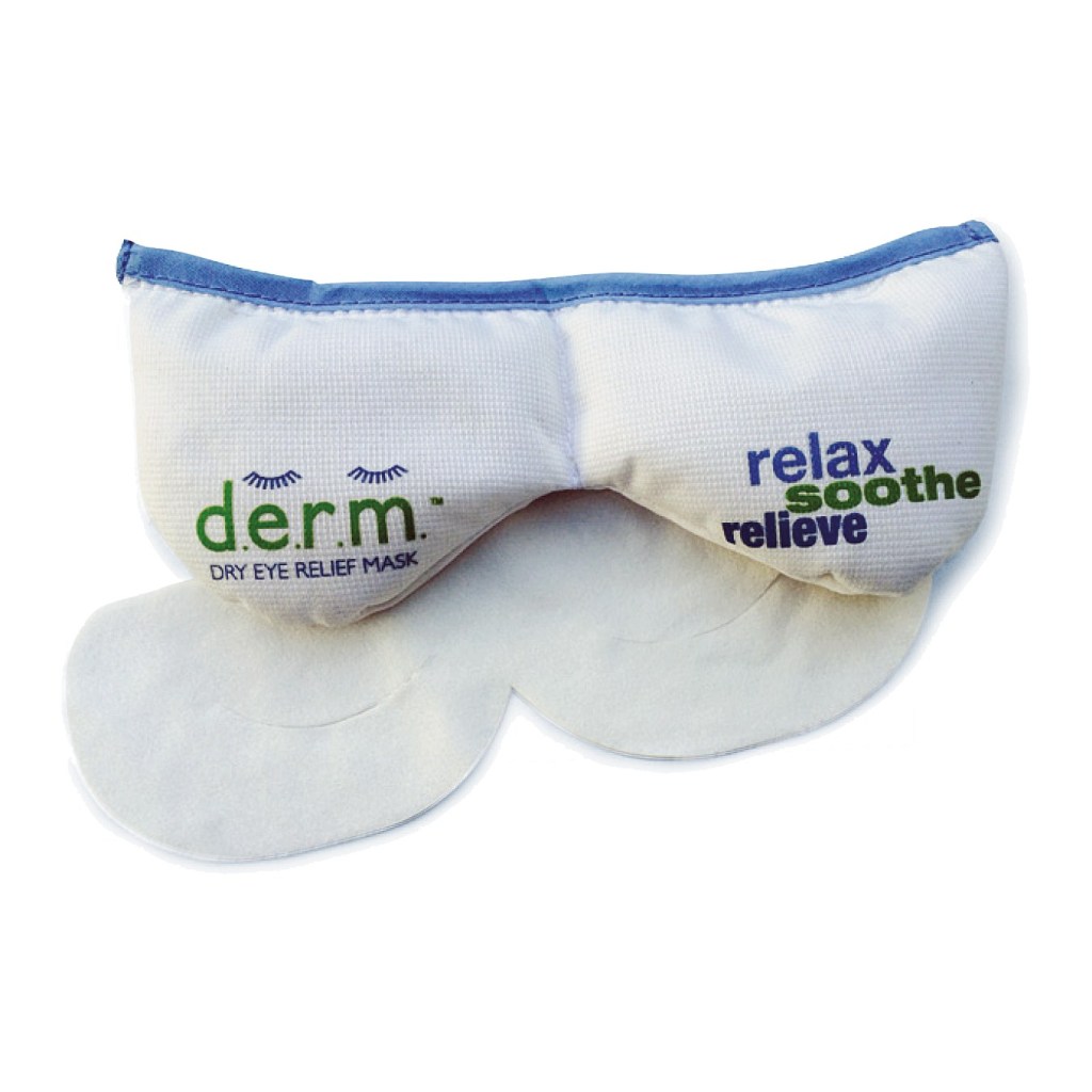In the first instance one of the best things you can do to combat dry eye is to apply heat. Every night use a hot compress such as a D.E.R.M Mask for 5 to 10 minutes and then gently massage the eyelash root area, both top and bottom of the eyelid. The heat will help to open the oil glands, and help encourage the release of the hardened gland secretion that clogs the gland.